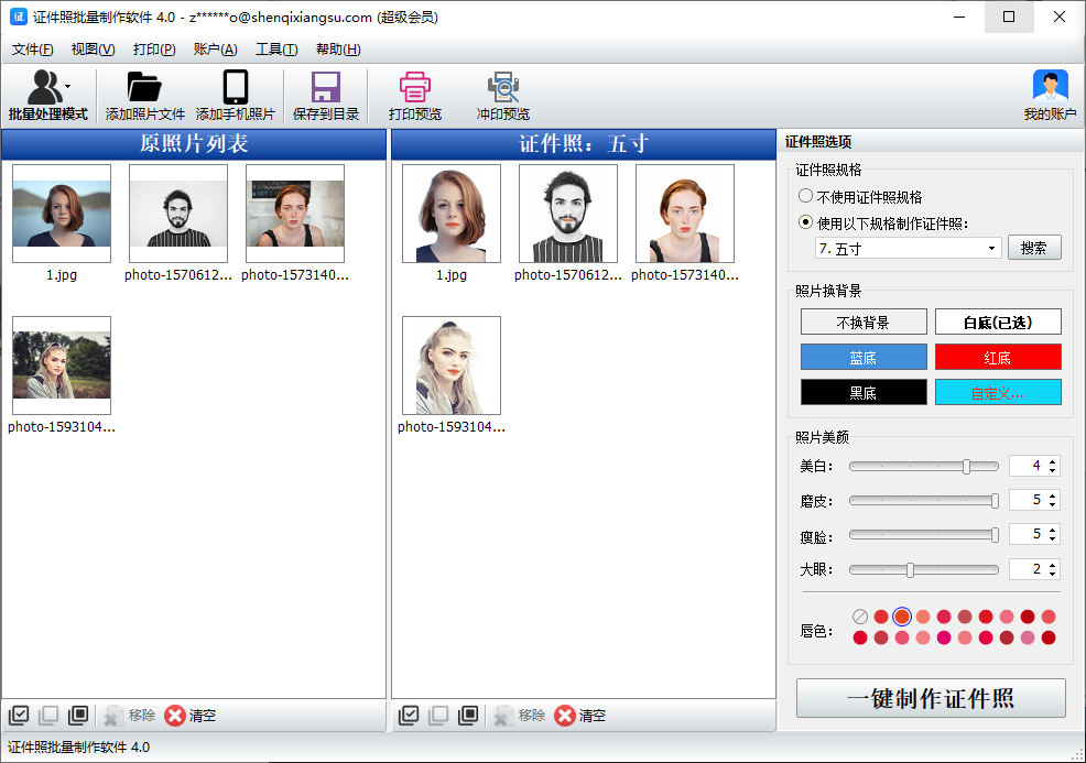 批量制作证件照,一键批量制作多张证件照,大大节省人力成本;