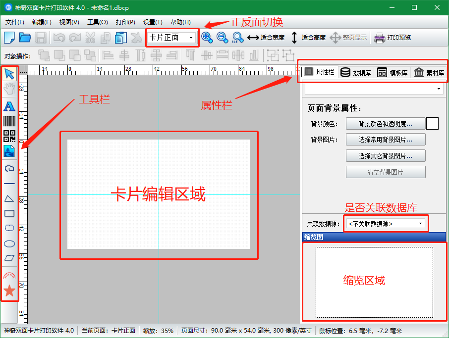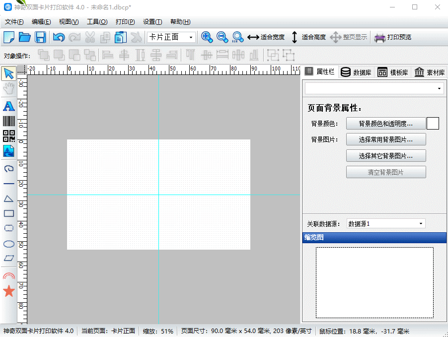 如果你想为自己设计非常多的人都在使用人用的一款与众不同或者精美的名片就赶紧来试试这款神奇名片设计打印软件吧~该款软件内置多种名片制作功能,包括双面编辑、二维码、条形码、文字编辑、缩略图、放大缩小、适合宽度、适合高度、整页显示功能,可以帮助您快速制作出专属你的个人名片。