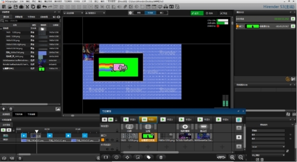 Hirender S3的资源管理包含素材库、屏幕管理、节目特效、设备管理、输入控制以及图片一键优化等功能。可以在素材库里面添加视频、图片、PPT、采集卡、NID网络屏幕、字幕等,并实现对素材的删除、添加、排序等操作。屏幕管理可查看屏幕信息和状态。节目特效可增加素材的灵活多变性。设备管理可查看设备的状态和处理器占用。输入控制可以编辑普通控制和MIDI控制等。节目列表功能非常方便节目便捷快速浏览。右下角的一键优化按钮开关可以实现对图片的优化。节目插播可以辅助时间线使用,非常方便临场节目修改,也可实现现场摄像等信号切换(导播)。