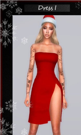 模拟人生4红色露腿圣诞节服装MOD,这是作者专为圣诞节制作的一件女性圣诞连衣裙,款式比较简约,采用的是抹胸包臀式的版型,侧边大腿处做了开叉设计,具体效果如下图,非常性感,颜色当然是圣诞节专属的圣诞红啦,喜欢的玩家可以下载进游戏给角色穿上哦~