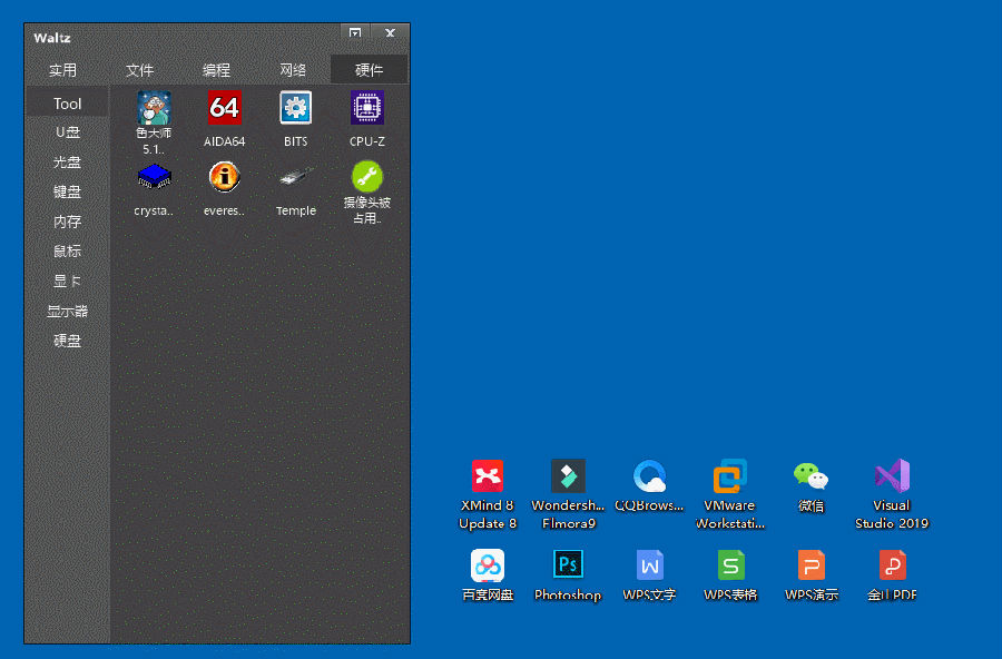 华尔兹启动器是一个简易的绿色桌面快速启动工具,能够帮助用户快速打开需要使用的文件或程序,支持30多种便携路径,还支持拖拽功能,可以拖动软件到软件窗口,非常非常方便,不需要使用的时候会自动隐藏窗口,不用担心它会影响您的其它操作,感兴趣的话快来试试吧~