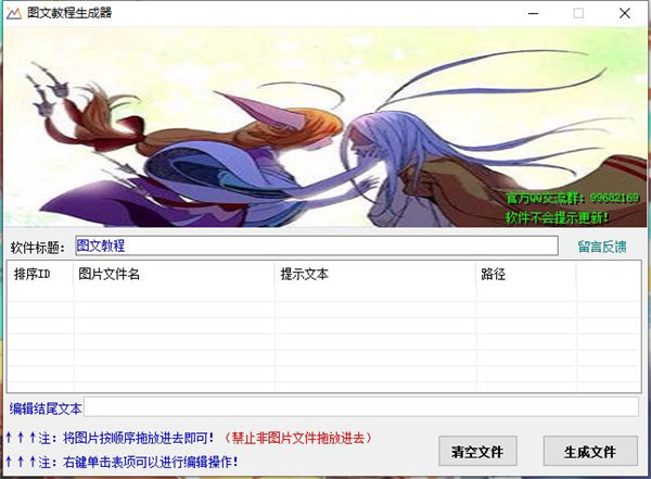 图文教程生成器可以生成各种类型的教程,适合教师或者攻略制作人员等等,通过这款软件用户能够轻松地制作图文教程,操作起来很简单,只需将图像拖入即可生成,即使是没有制作经验的用户也可以很快上手并掌握,纯图片、纯文字以及图文结合的教程都可以制作哦~