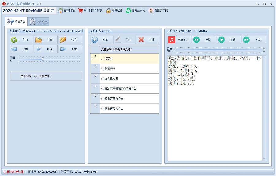 远方文字转语音软件可以将文字用朗读的效果转换为语音内容,支持多种国家的语言,用户还可以自定义设置朗读的效果,为朗读的音频更换背景音乐,操作很简单,将文本文件导入之后就能进行操作了,转换的音频内容可以导出为mp3文件,可以用于超市促销等场景。