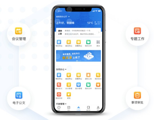 赣政通是面向江西政务工作人员提供专属内部协同办公的平台,业务应用集约管理,为不同公职人员构建最小单元,内置会议管理、日程管理、通知公告、电子公文、事项审批、专题工作、文件管理等功能,数据、运营专有化,采用了国密算法端到端加密,确保政务工作信息不外流,用户可放心使用。