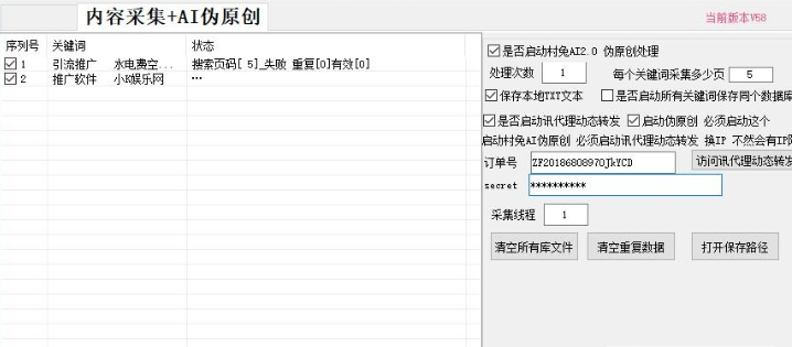 AI智能文章采集软件对于从事自媒体或者软文的朋友们来说一定是一个非常非常实用的文章采集处理神器,该软件不仅能够帮助用户采集好的文章,还可以进行伪原创处理,一键发布,处理后的文章原创度和收录率都在80%以上,大大的提高营销效果,推荐大家试一试哦,相信您会喜欢的~
