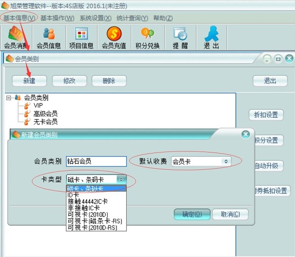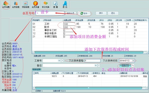 4、会员消费:会员类别自动升级。可以按不同的服务项目分别收费、积分、打折。