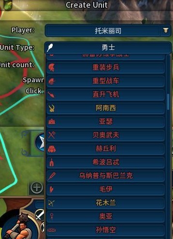 5.在面板第一栏选择生成的单位归属哪个文明(AI或玩家)控制,第二栏选择所要生成的单位,第三栏选择生成数量。