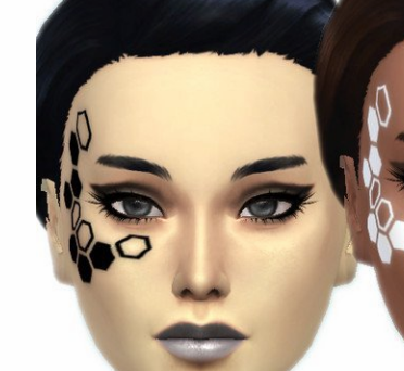 模拟人生4赛博朋克风格脸部涂装MOD能够在模拟人生4中添加非常多的人都在使用人用的一款新的面部外观,补丁的作者为游戏中的女性角色制作了很好看的面部涂装,这款涂装围绕眼周部位,由多个六边形组成,看起来非常有赛博朋克的风格,适合具有现代感和科技感风格的人物。