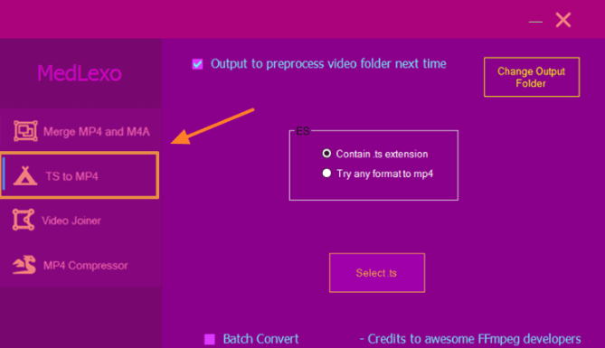 只是转换就选择左边选项栏第2个 "TS to MP4"