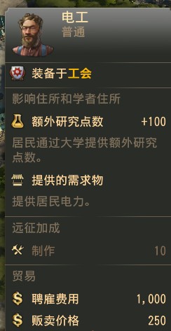 3、道路速度,港口仓库容量,工会范围,市政厅范围,港口办公室范围,维修起重机范围,马车装卸速度,商店刷新价格,发电厂供电范围x2;