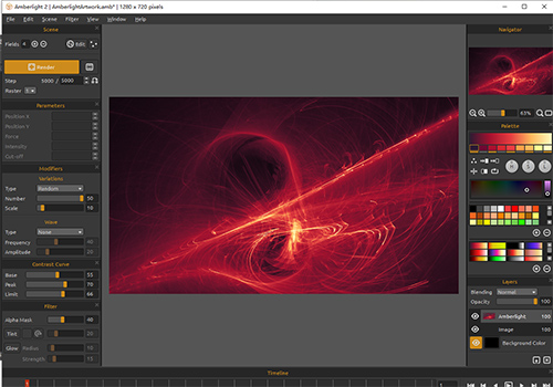 Amberlight中文版是主要应用于粒子特效图像和动画制作的一个软件,您可以利用它制作各种不同类型的粒子特效,快速渲染,让您的创意完美的展现,支持的文档类型也比较丰富,包括JPG、BMP、TIF或PNG文件与alpha通道,AVI、MOV、MKV&WEBM视频,还支持4K压缩或无损视频,十分强大!