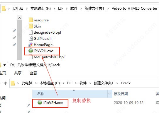 1、首先在本网站下载解压,得到crack补丁和ipixsoft video to html5 converter源程序;