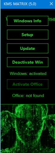 KMS Matrix的用户界面非常简单紧凑,除了两个按钮(一个用于激活Windows,另一个用于激活Office)之外,没有其他选项或其他功能。 因为它是基于Microsoft .NET Framework 4.5开发的,所以要使用它,必须确保Windows首先安装了Microsoft .NET Framework 4.5组件。 好消息是,与某些类似的工具不同,您无需以管理员身份运行它。