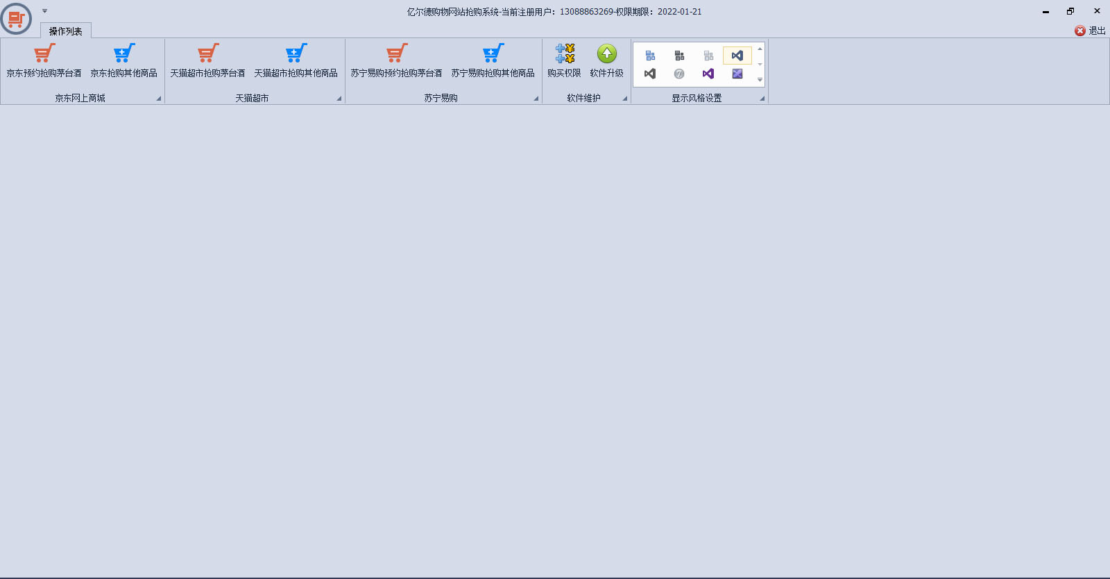 亿尔德购物网站抢购系统安装程序的功能包括京东预约抢购茅台酒、京东抢购其他商品、天猫超市抢购茅台酒、天猫超市抢购其他商品、苏宁易购预约抢购茅台酒、苏宁易购抢购其他商品等功能,软件最多可创建50个窗口同时抢购一件商品,极大提高相关购物网站稀缺商品抢购的成功率和抢购速度。