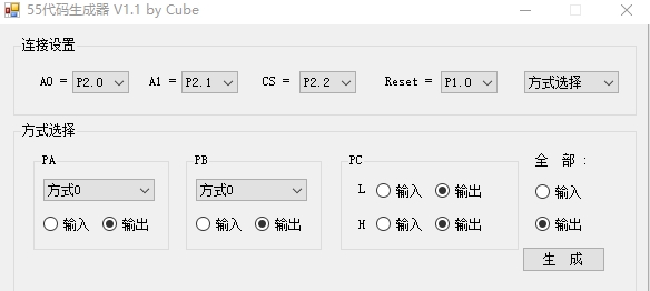 帮助用户快速生成8255芯片代码,出来的代码可以在校对后,拿去直接使用,非常的非常方便快捷