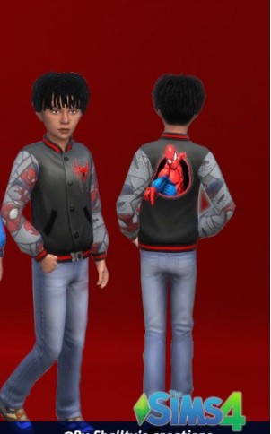 模拟人生4男孩帅气蜘蛛侠夹克MOD专为模拟人生4中的男性儿童角色打造,补丁的作者在游戏中设计制作了一件好看的新服装,玩家使用后就能给小男孩穿上一件帅气的夹克衫外套,这件夹克制作得十分精致,后背带有蜘蛛侠图案的印花,袖子上也有一些同样元素的花纹,包含两种颜色。