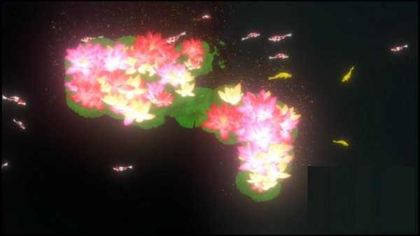 步步升莲互动软件,玩家踩踏的地面上会产生莲花和水波纹的互动,鱼儿受惊吓迅速散开。(自适应分辨率)