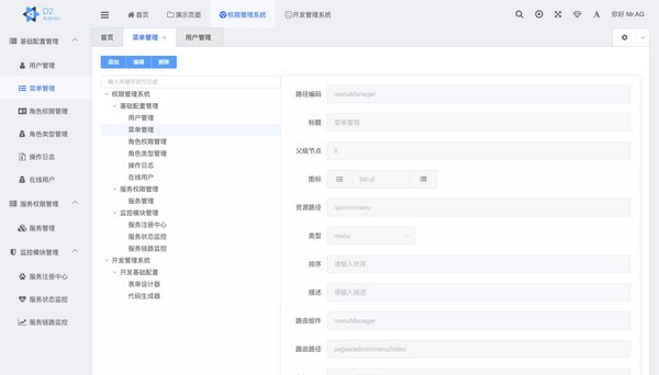集成d2admin中台化前端,优化前端架构和功能布局,支撑中台服务化的应用开发。