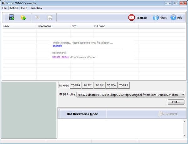 除了批量转换模式,Boxoft WMV Converter还提供了热目录模式,在后台转换WMV文件。只要将WMV文件写入监视器文件夹,它们就会在后台自动转换为定义的格式