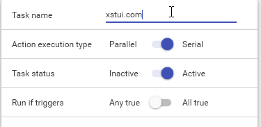 触发器设置杂项设置任务名称、操作执行类型(并行或顺序执行)、任务激活状态、触发机制(任一或所有触发条件满足)。