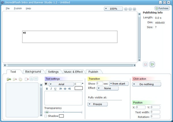 IncrediFlash Intro and Banner Studio作为非常多的人都在使用人用的一款专业强大的动画制作软件,内置功能十分丰富,您可以利用它轻松制作出各种特效,调整文本字体,在特定时间后使文本冻结或消失,还有自定义背景颜色、背景图像,添加灯光和动画效果,例如雨,雷雨等,制作出令你满意的动画效果。