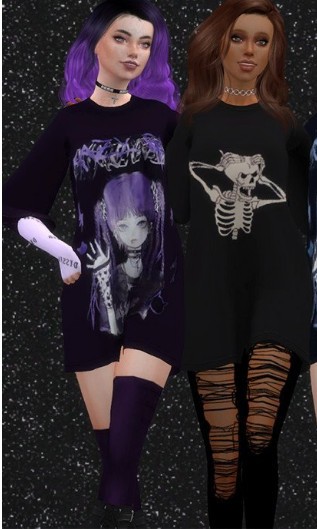 模拟人生4女性美丽的印花上衣MOD,作者制作了非常多的人都在使用人用的一款嘻哈风格的女性上衣,走的是宽松男友风的style,颜色是非常百搭的黑色,上面印有一些二次元图案,或者骷髅,具体样式可以参考下文图示,甜酷女孩必备衣服,而且还有多种款式可以选择,来看看你喜欢哪一件吧~