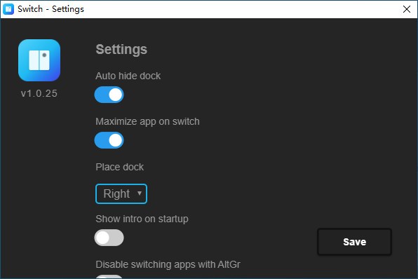 Switch为你提供了一个码头,你可以将应用程序分配到预定义的快捷键上。