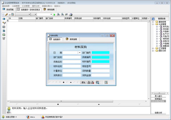 企业报表管理系统是一套对生产计划、产品产量、材料采购、付款金额、产品销售、销售回款、货币资金、当前库存等方面进行全面管理的计算机管理软件。