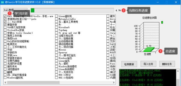HanLin学习任务进度软件很适合老师用来管理学生的学习进度,软件是由网友原创制作,虽然简单但是功能很非常实用,是一个可以统计学生学习进度的辅助工具,使用起来很便捷,为老师减轻了许多工作负担,支持用户自由导入科目知识点内容,学生完成之后可以在上面勾选,直观展示学习状况。