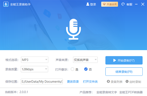 全能王录音助手支持录制多种音频声音来源,包括电脑麦克风、系统声音或全部声音来源,可以通过快捷键执行开始录制、结束录制,还能够根据需要自由选择录音质量预设以及定时录制,非常非常方便,不过输出格式虽然可选,但是目前仅支持输出MP3格式的音频文件,需要的话可以下载哦!
