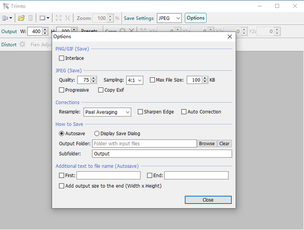 Trimto 来自国外,是一个简单但是非常非常实用的图片编辑工具,包含了多种常用的功能,支持bmp、gif、png等格式的图片,用户可以通过软件对图片进行裁剪、转换、校正等操作,还可以一次性处理多张图片,节省了非常多的人都在使用的时间和精力,让用户快速获得到所需的图片效果,体积小巧。