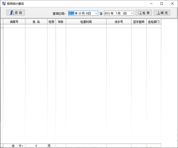 9、统计:软件通过对不同字段的查询得出的结果可以打印报表,如:可以统计某医师某个月的诊断量,某医师某个月的送诊量,并打印出报表。