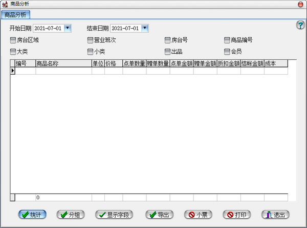 房台分析:房台销售报表,支持分房台统计各商品大类的销售金额