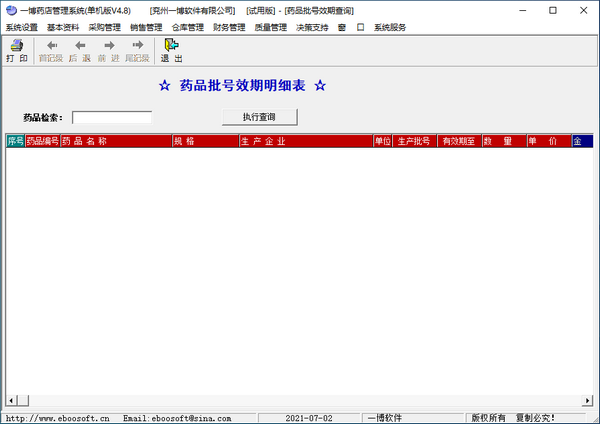5.提供药品批号效期报表、近期失效药品报表、过期失效药品报表,在更大程度上提醒您防范经营中的风险,多方位为经营决策提供服务