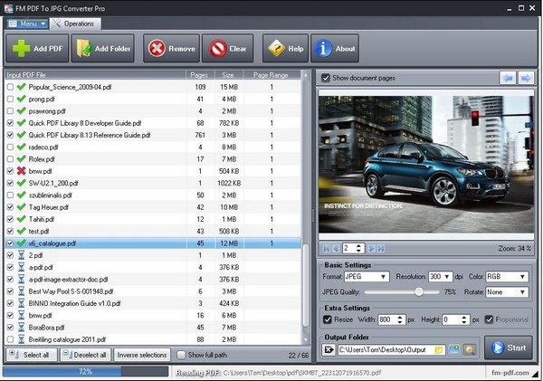 想要将pdf格式的文档转换为图片的朋友们可以来试试这款FM PDF To JPG Converter Pro 软件,软件功能强大,能够帮助用户快速将pdf输出为JPG图片的格式,支持将PDF文档的每个页面转换为图片,不需要一页一页去操作,非常非常方便,只需要将文件拖入软件中即可,加密文档也能转换。