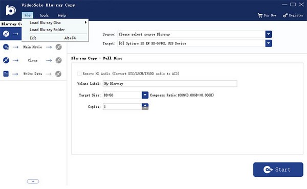 VideoSolo Blu-ray Copy可以将蓝光电影光盘1:1克隆到另一张空白蓝光光盘,凭借先进的蓝光复制技术,提供四种不同的复印模式,包括“完整光盘”、“主电影”、“克隆”和“写入数据”,也完全支持 3D 蓝光,还能将将蓝光复制到硬盘,完整保留原始蓝光光盘的信息。