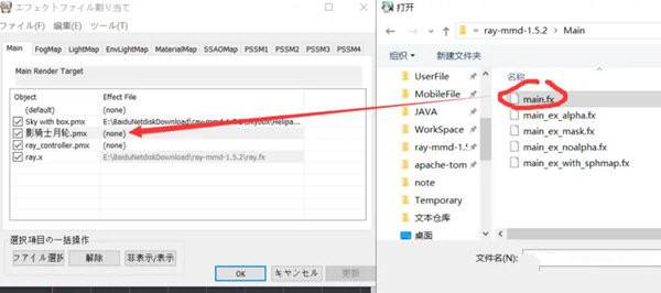 步骤5、再打开右上角mmeffect区,在main栏给模型加载main.fx: