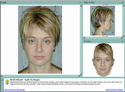 眼睛:眼睛是最非常重要的的部分,以获得正确的,特别是动画,和差异之间的良好对齐和错误对齐的眼睛是非常明显的。保持眼睑中点分别通过瞳孔的中心沿垂直线延伸,并且保持这些点到瞳孔两边的距离与中心线大致相等——使用图像中的虹膜作为引导。将眼睑周边尽量靠近眼睑内侧可见边缘,仔细观察3D视图中的效果。