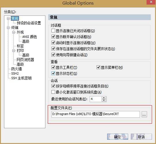 红色框就是CRT配置文件的位置。修改为软件安装位置下的CRT目录即可。