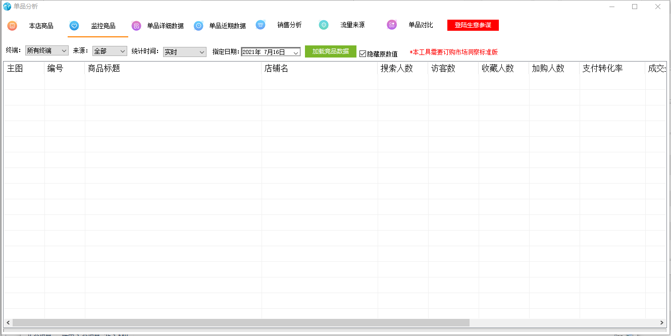 6、可以在软件立即获取淘宝销售数据,从而对单品分析;
