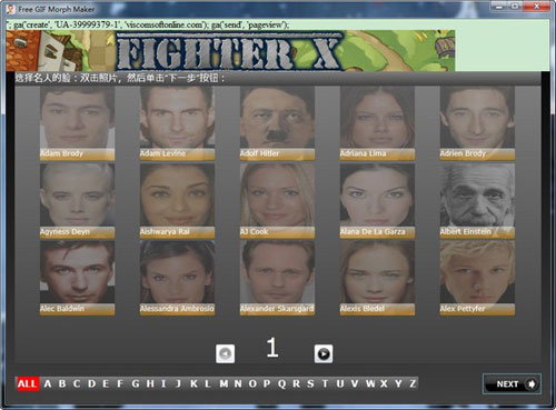 1、选择名人的脸双击照片然后点击下一步按钮