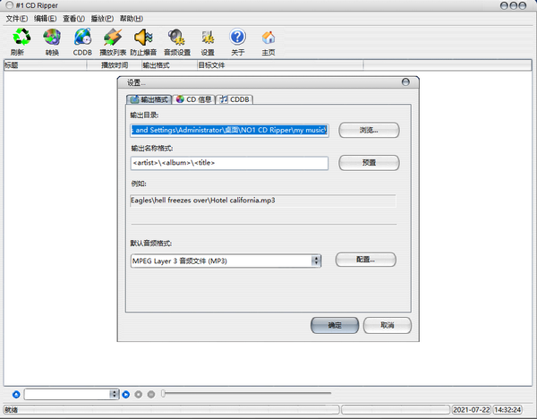 在设置界面中,可以配置输出目录,输出名称格式,默认音频格式,CD信息和其他参数。