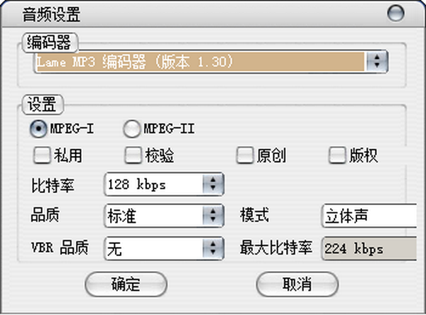打开音频设置,您可以定义音频编码器。配置音频比特率,音频质量和其他参数。