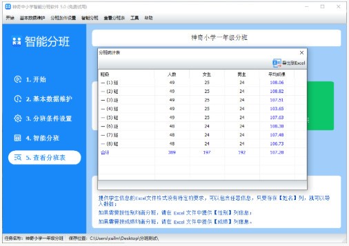 软件具备了导入和导出的功能,强大的分班系统能快速按照用户所需的要求进行学生的班级分配,让性别和成绩都更加的均衡,界面简洁,使用起来很非常方便,分班表也十分直观。