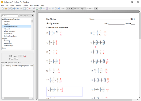 按比例增加或减少分配中的问题数量。这在规划课程时非常有用。您可以创建一些问题作为示例,然后扩大问题数量以创建家庭作业。关于作业的问题将是全新的,但正是从课程开始 - 而且您不需要再次设计问题。