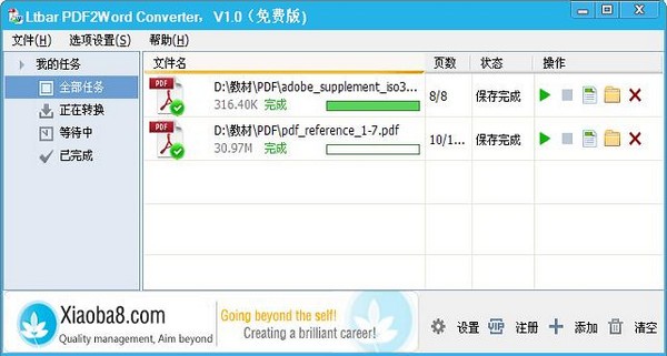 Ltlbar PDF2Word Converter 为用户提供了强大的pdf文档转换功能,用户可以使用软件将pdf格式的文件轻松转换为word文档的格式,非常方便进行修改和编辑的操作,软件采用了多线程的转化方式,支持同时添加多个pdf文件进行转换,帮助用户节省了非常多的人都在使用时间,快速获取到word文件。