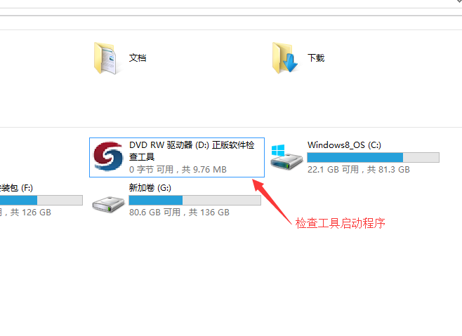 将检查工具光盘放入电脑光驱中,打开我的电脑,双击打开正版软件检查工具,进入检查工具工作页面。