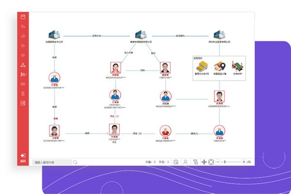 简洁易懂的图形,丰富的素材,人人可上手的人物关系图绘制,可应用在犯 罪关系、团伙关系、走私关系等场景