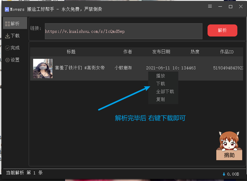 喜欢在各种短视频平台看视频的朋友们千万不要错过了!今天小编为大家分享的这款movers搬运工好帮手是一个简单非常实用的视频下载工具,能够帮助用户快速搬运网络平台上的短视频资源,支持多个平台,包括快手、抖音、火山、微视、西瓜、头条等等,让用户轻松获取想要的视频资源。