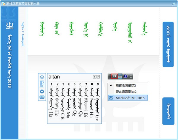 版权声明:蒙科立蒙古文智能输入法所展示的资源内容均来自于第三方用户上传分享,您所下载的资源内容仅供个人学习交流使用,严禁用于商业用途,软件的著作权归原作者所有,如果有侵犯您的权利,请来信告知,我们将及时撤销。